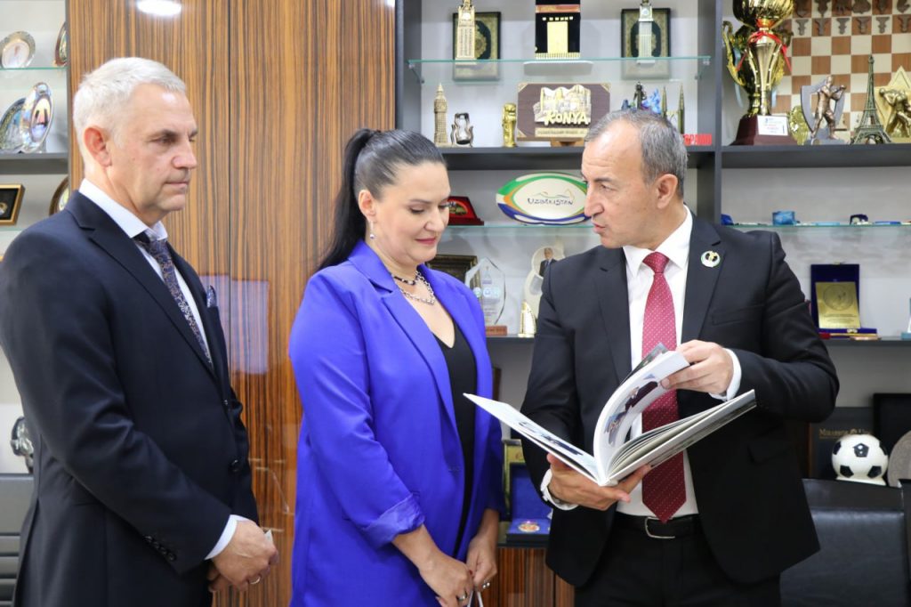 В торжественной обстановке Председатель БОА Наталья Апончук и ректор Института переподготовки и повышения квалификации специалистов по физической культуре и спорту, профессор Илхомжон Турсуналиев подписали договор о сотрудничестве и обсудили дальнейшие направления совместной работы.