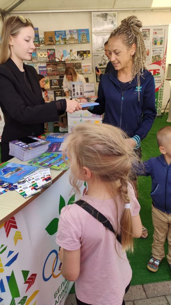Большой интерес юных посетителей вызвал «Олимпийский дневник» — проект НОК Беларуси и БОА, который уже много лет радует школьников и погружает в мир спорта и здорового образа жизни! Наиболее заинтересовала посетителей массово-политическая, художественная и детская литература.