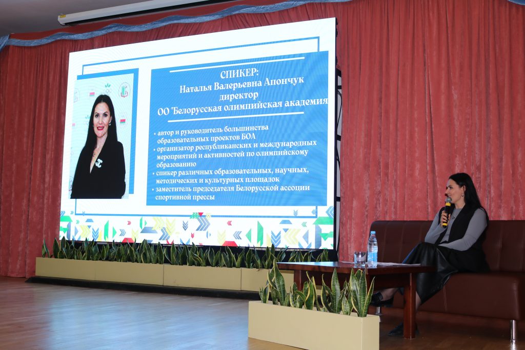 Декан спортивно-педагогического факультета массовых видов спора БГУФК, Председатель Президиума БОА Ирина Гуслистова провела Олимпийский урок. Ребята познакомились с основами олимпийского движения в мире и Республике Беларусь.
