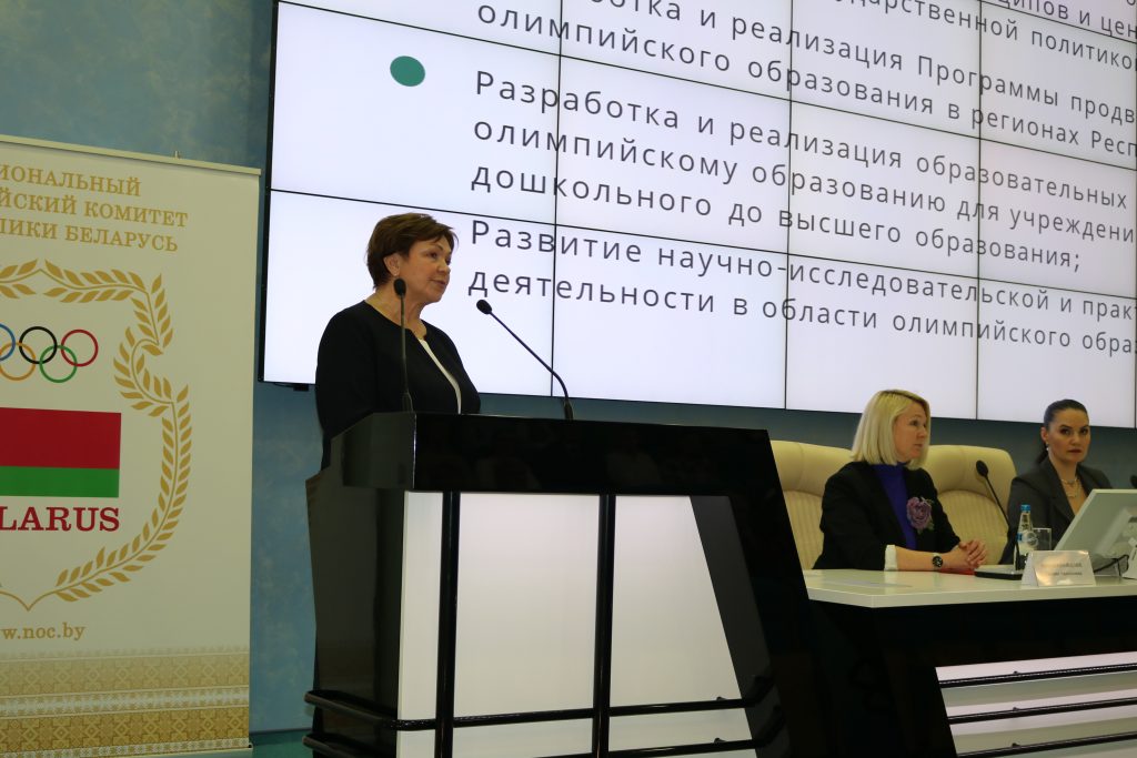 С вступительным словом к участникам Конференции обратился Президент Национального олимпийского комитета Республики Беларусь Виктор Александрович Лукашенко. Он отметил высокий уровень развития олимпийского образования в стране и вручил почетную грамоту Национального олимпийского комитета Республики Беларусь за значительный вклад в развитие олимпийского движения, плодотворную деятельность, направленную на пропаганду олимпизма, популяризацию спорта и здорового образа жизни Гуслистовой Ирине Иосифовне.