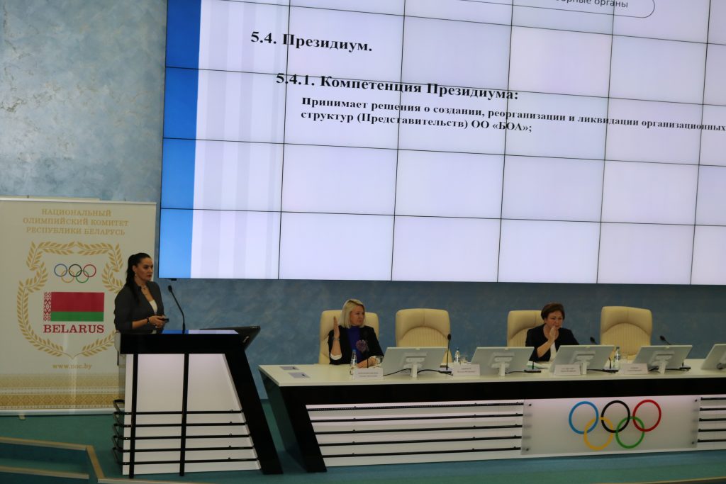 Отчет о работе ОО «Белорусская олимпийская академия» за период за 2023 год представила Председатель Президиума ОО «БОА» Ирина Иосифовна Гуслистова.