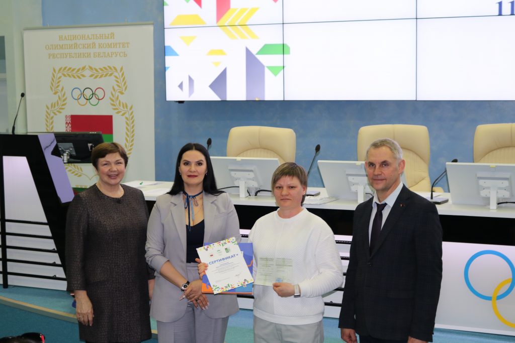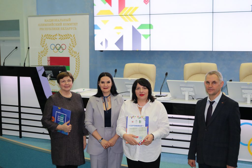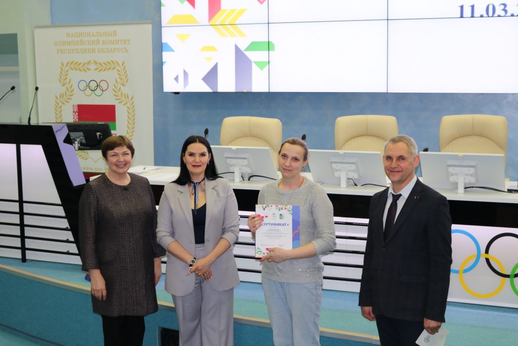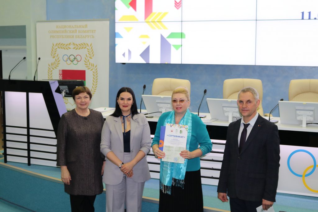 В торжественной обстановке Председатель БОА Наталья Валерьевна Апончук, почетный член БОА, декан спортивно-педагогического факультета массовых видов спорта БГУФК Ирина Иосифовна Гуслистова и директор ИПКиП БГУФК Олег Иванович Луцевич вручили всем слушателям свидетельства об успешном прохождении курсов, именные сертификаты и презентационное издание «Быстрее, выше, сильнее» от НОК Беларуси.