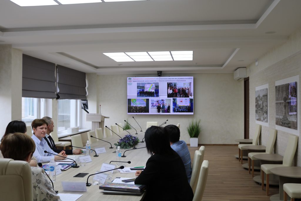 Опыт внедрения олимпийского образования в систему работы школы в Республике Казахстан и профессиональной поддержке учителей школы в условиях внедрения олимпийского образования представили заместитель директора Института педагогики и психологии Казахского национального педагогического университета имени Абая Марфуга Абсатовна Абсатова, доктор педагогических наук, профессор, и директор Олимпийской академии Казахстана, заведующий кафедрой «Национальных видов спорта и борьбы», доктор педагогических наук, профессор Айдын Багдатович Дошыбеков.