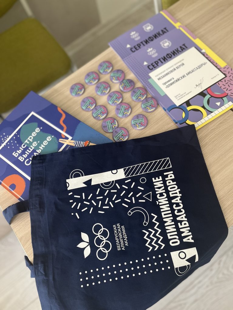 В завершающий день наших занятий Белорусской олимпийской академией в лице директора Апончук Натальи Валерьевны и Председателя Президиума Гуслистовой Ирины Иосифовны, а также представителями лагеря «Лидер» в торжественной обстановке было организовано вручение сертификатов, подтверждающих что ребята действительно теперь являются олимпийскими амбассадорами и могут делиться полученными знаниями со своими сверстниками. И конечно же мы не оставили ребят без сувениров и каждый получил памятные подарки от Национального олимпийского комитета и Белорусской олимпийской академии.