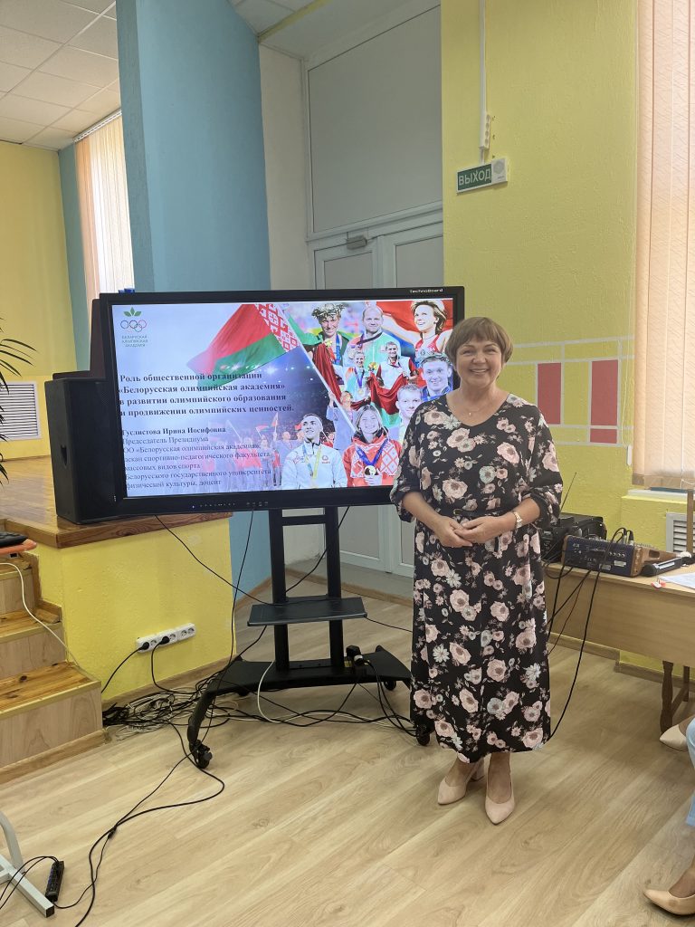 Наш традиционный семинар-практикум по олимпийскому образованию «Использование потенциала олимпийского движения в формировании ценностных ориентаций и национального самосознания у детей и молодежи» прошел на базе учреждения образования ГУО «Средняя школа №2 г.Копыля имени Тишки Гартного». Спикерами выступили Председатель Президиума ОО «БОА», декан спортивно-педагогического факультета массовых видов спорта БГУФК, доцент Гуслистова Ирина Иосифовна, директор ОО «БОА» Апончук Наталья Валерьевна.
