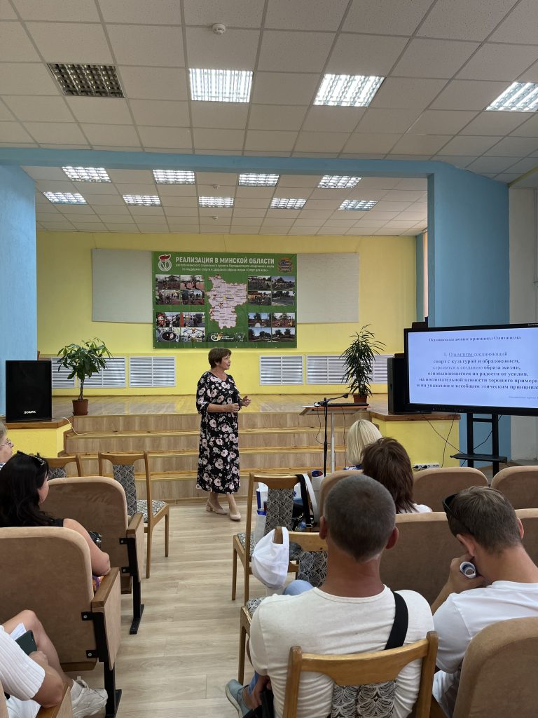 Также для педагогов дошкольного образования на семинаре с докладом «Современные подходы в организации мероприятий по олимпийскому образованию детей дошкольного возраста» выступила Захаревич Анна Александровна – член Президиума ОО «Белорусская олимпийская академия», заместитель декана спортивно-педагогического факультета массовых видов спорта БГУФК, магистр педагогических наук.