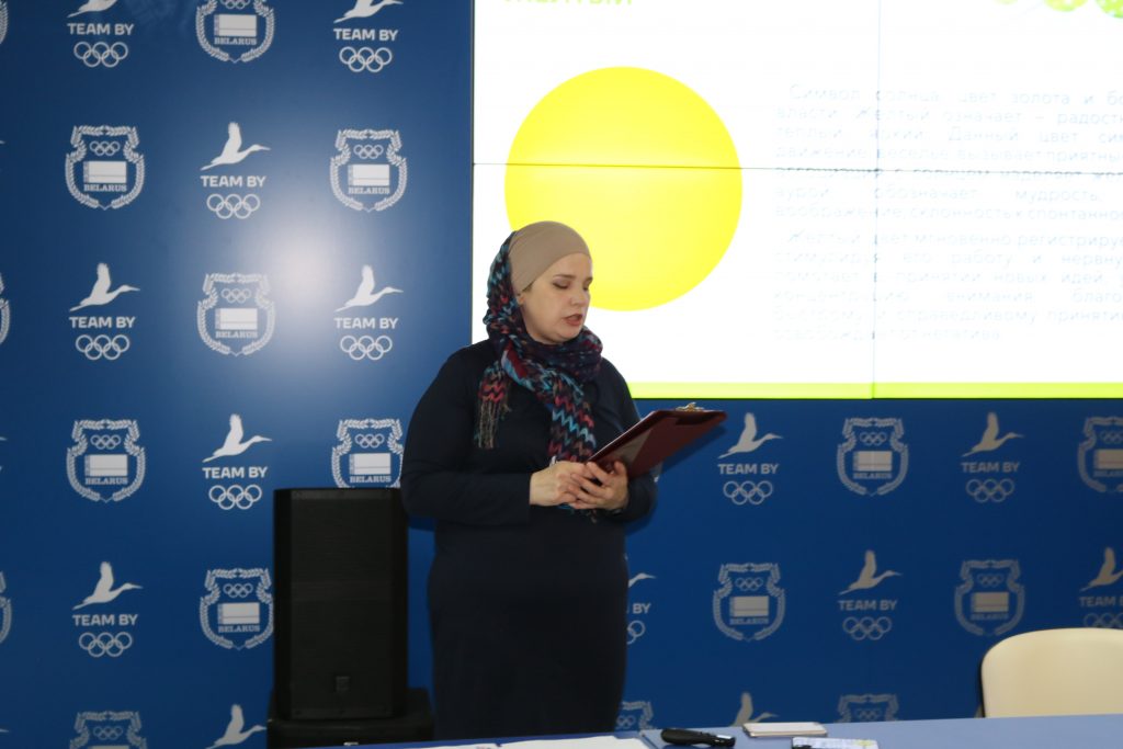 Традиционный «Клуб олимпийского творчества» с углублённым знакомством с цветовыми решениями в работе с детьми дошкольного возраста провела дизайнер Белорусской олимпийской академии Зоя Голованова.