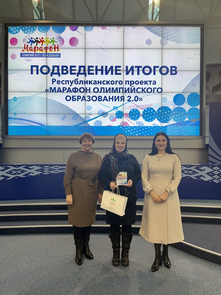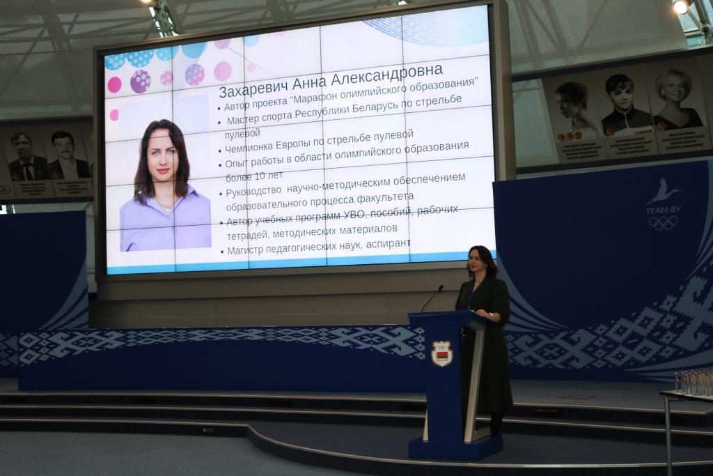 Автор проекта «Марафон олимпийского образования» Захаревич Анна подвела итоги проекта, в рамках которых были выделены самые творческие учреждения образования. А так же прошла презентация авторских игр для детей 5-6 лет «Олимпийские карточки» руководителя физического воспитания государственного учреждения образования «Детский сад №298 г. Минска» Натальи Гончаренок.