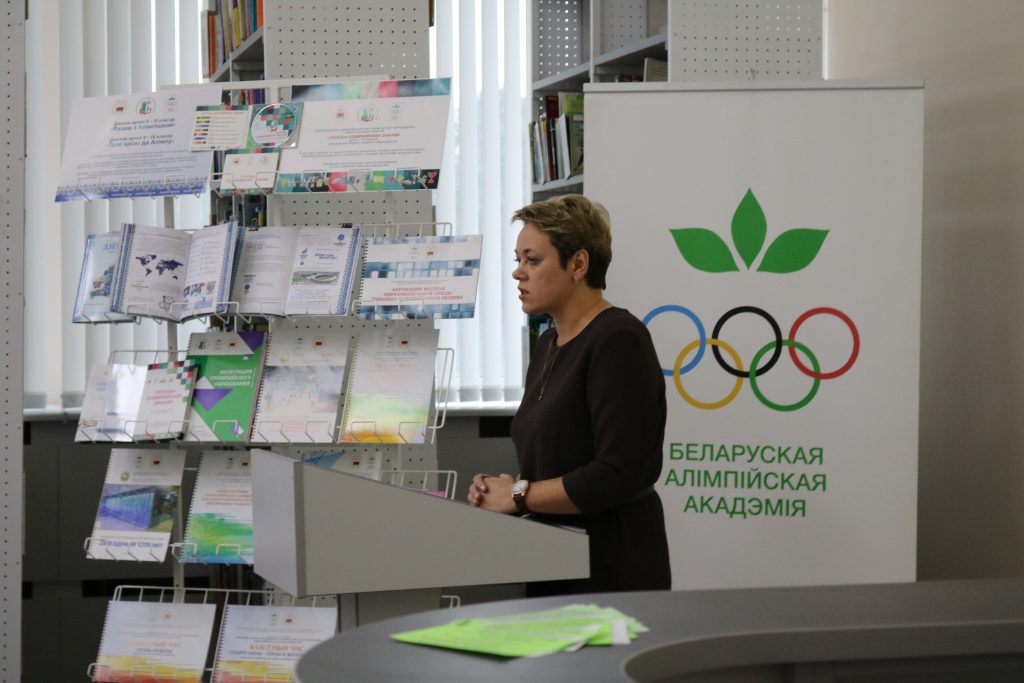 Председатель Белоруской олимпийской академии, декан спортивно-педагогического факультета массовых видов спорта Белорусского государственного университета физической культуры Гуслистова Ирина Иосифовна отметила, что актуальность проблемы олимпийского образования логично выдвигает в качестве общественно значимой проблему реализации ценностей Олимпизмав общественное и личностное сознание через имеющуюся систему институтов учреждений образования.