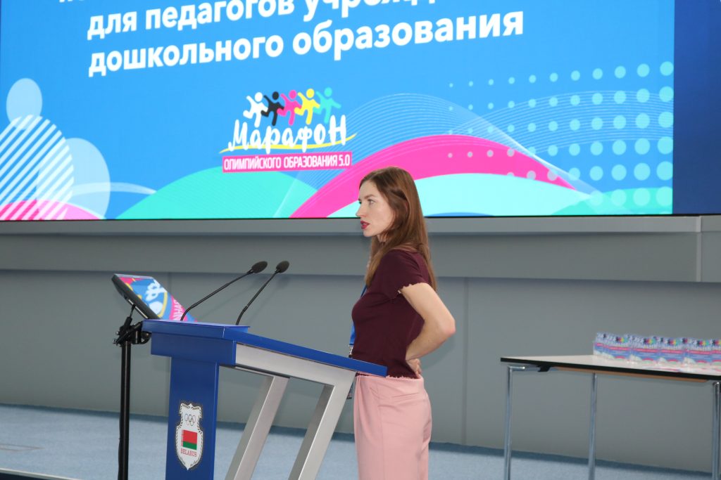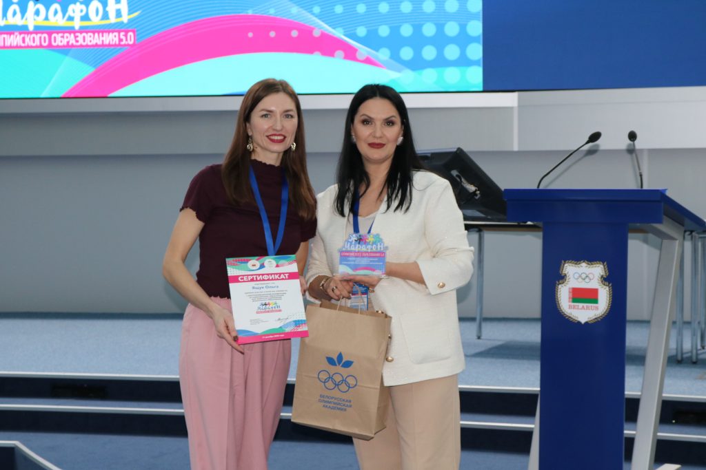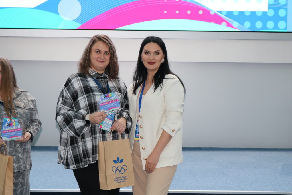 Автор проекта «Марафон олимпийского образования» Анна Захаревич представила пятилетний отчет о реализации программы. Она отметила значительный рост вовлеченности и поблагодарила всех участников, особо выделив самые творческие и активные учреждения, которые были удостоены специальной призом от БОА за вклад в популяризацию олимпийских ценностей.